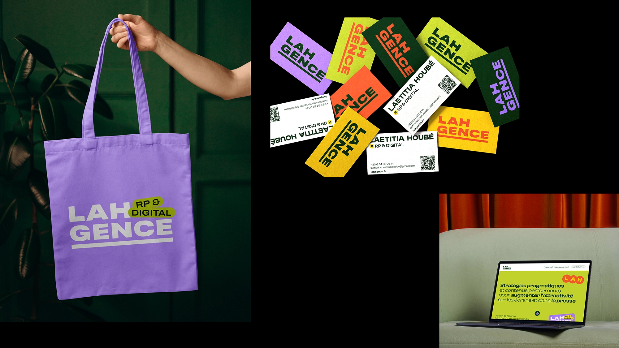 L’ensemble de l’identité visuelle a été pensé pour traduire l’esprit dynamique, créatif et unique de Lahgence.