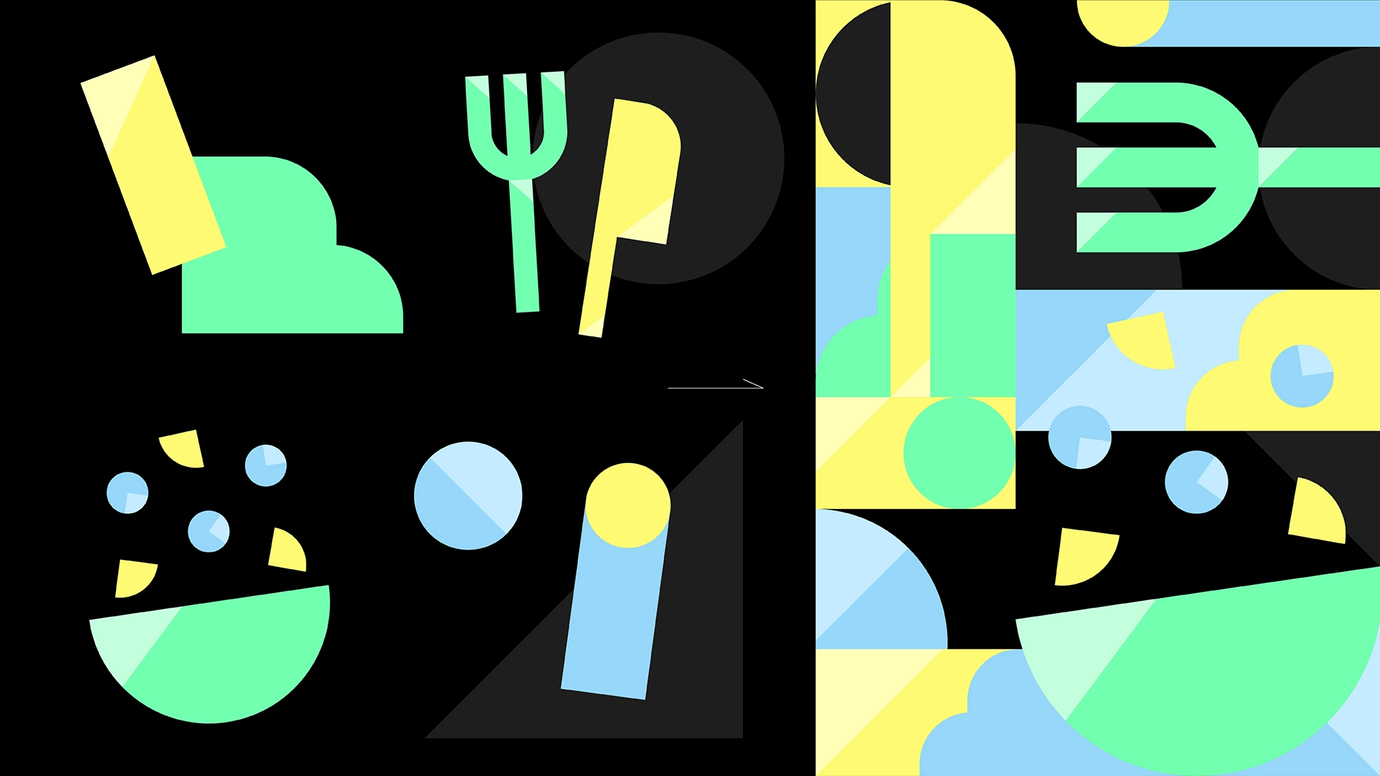 éléments graphiques peuvent exister de manière indépendante ou s’imbriquer pour former des compositions